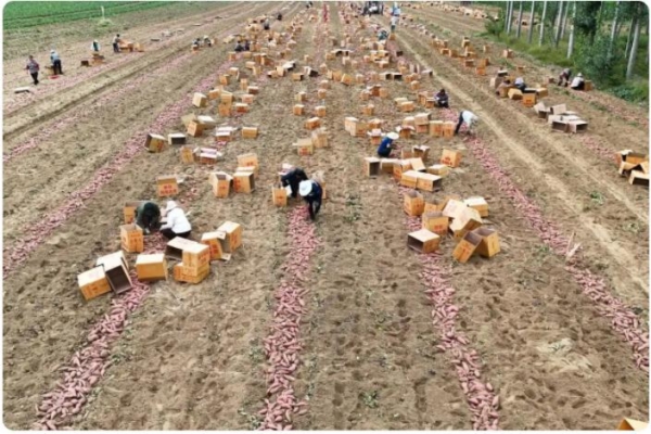 近日,河北省卢龙县的鲜食红薯陆续进入收获期,农民开始适时收获,供应市场。近年来,当地政府根据辖区沙质土壤透水透气性好的特点,引导农民采取“合作社+农户”的模式,规模化发展红薯种植,促进农业增产农民增收。
